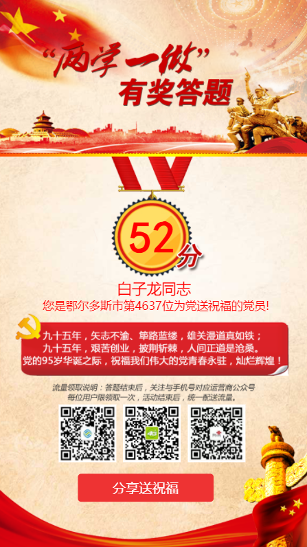 鄂尔多斯党员教育微平台“两学一做”有奖答题